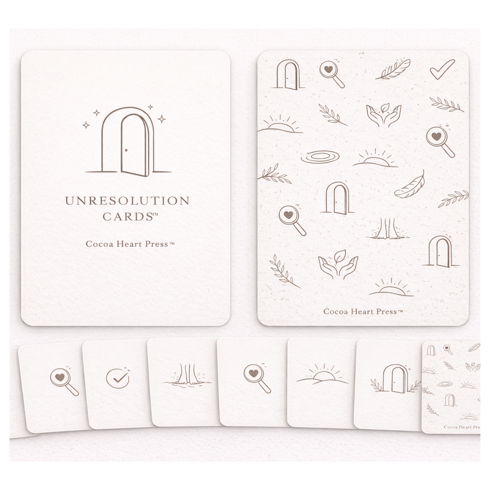 Unresolution Cards™ are not a plan. They are a calm alternative to resolutions and goal-setting. Ten reflection cards offering language for becoming — without pressure.
